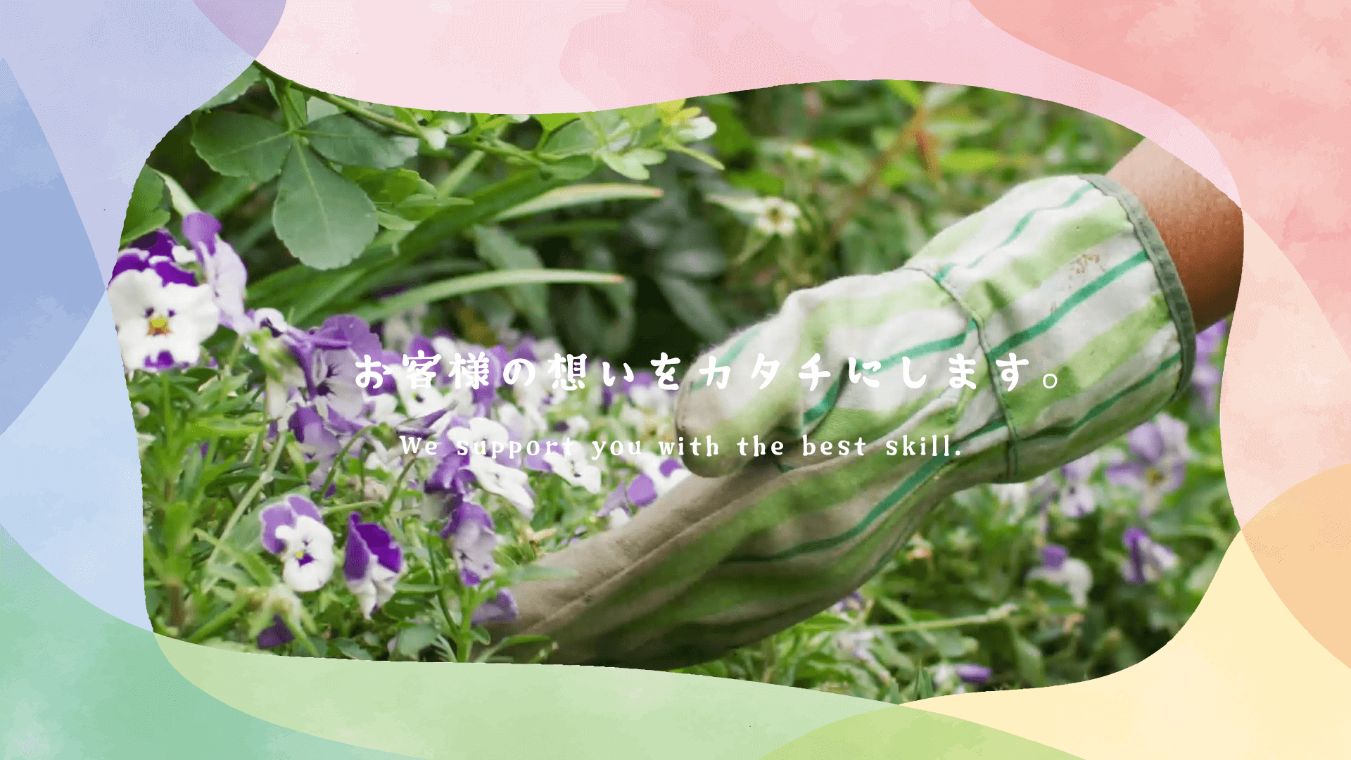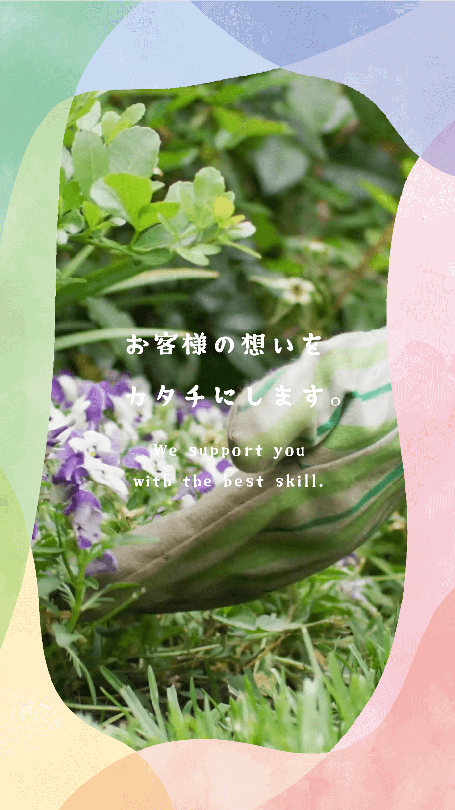 株式会社○○造園では、発注いただく方々、従事される方、すべての方から感謝していただける仕事を行うべく、最大限の努力を惜しまず業務にあたっております。